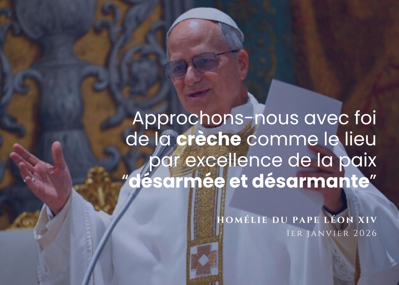 Lors de son homélie prononcée le 1er janvier, à l’occasion de la solennité de Marie, Mère de Dieu, et de la LIXe Journée mondiale de la paix, le pape Léon XIV, à l’approche de la fin du Jubilé de l’Espérance, a invité les fidèles du monde entier à s’approcher avec foi de la crèche, « lieu par excellence de la paix désarmée et désarmante ».