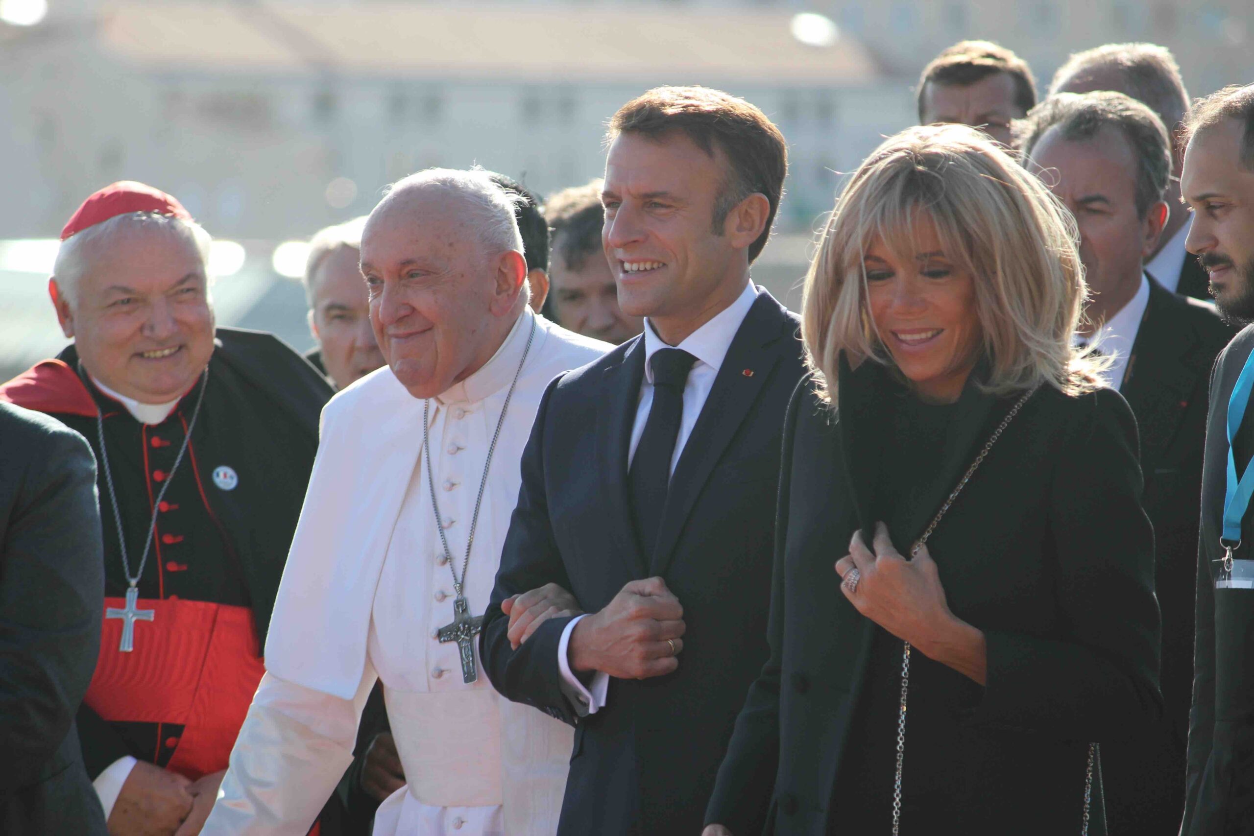 La saint-père a été accueilli par le Président de la République, Emmanuel Macron.