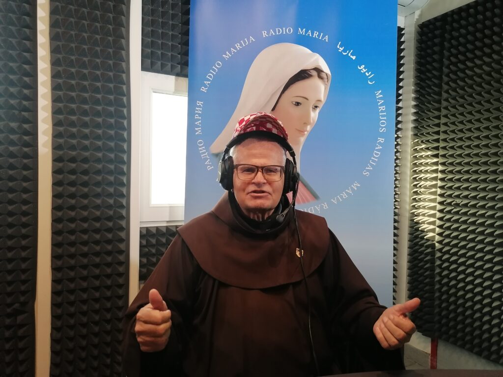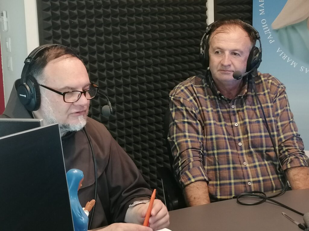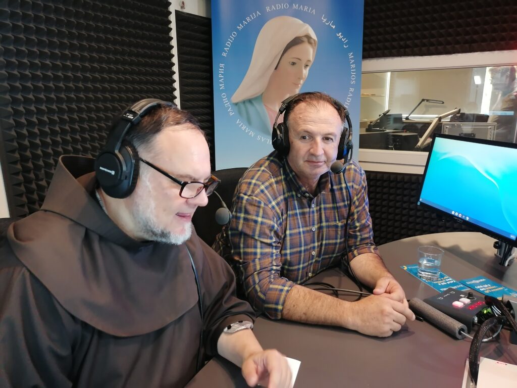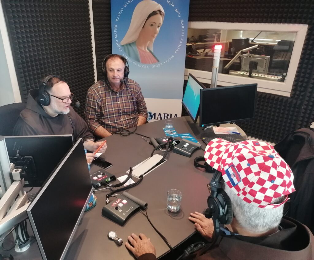 Grande joie ce matin, mercredi 2 octobre, aux studios de Radio Maria pour la visite du Père Boris Barun et du Frère Ciro de Medjugorje, accompagnés de Marjio Mijatovic, mari de la voyante Vicka. Ensemble, ils ont enregistré l’émission Medjugorje, le message, diffusée ce samedi 6 octobre (et chaque 1er samedi du mois en direct de Médjugorje) à 10h10.