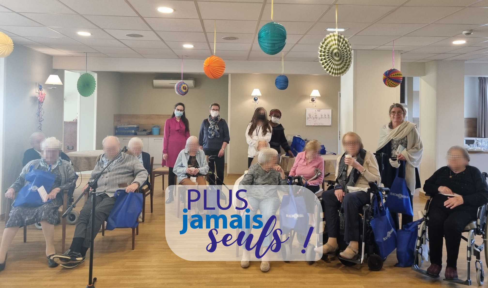 Nous avons été très touchés par la foi, la simplicité et l’ouverture de coeur des résidents. Si pour certains, la prière du chapelet semblait bien connue, pour d’autres, elle paraissait un peu plus lointaine… mais progressivement, les « Je vous salue Marie » murmurés sont devenus de plus en plus forts et nous avons ressenti à quel point il étaient priés avec coeur ! Et quelle joie pour chacune de ces personnes de recevoir un petit sac bleu Radio Maria, à l’intérieur duquel était offert une radio DAB, fruit de la générosité de nos auditeurs !