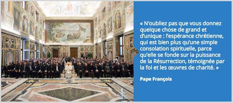Pape François : « Je vous invite à persévérer dans votre engagement qui est devenu une véritable mission, fidèles à l’Évangile et au Magistère de l’Église et à l’écoute de la société et des personnes, spécialement des plus pauvres et de ceux mis au ban de la société, de façon à être pour tous vos auditeurs un point de référence et un soutien. »