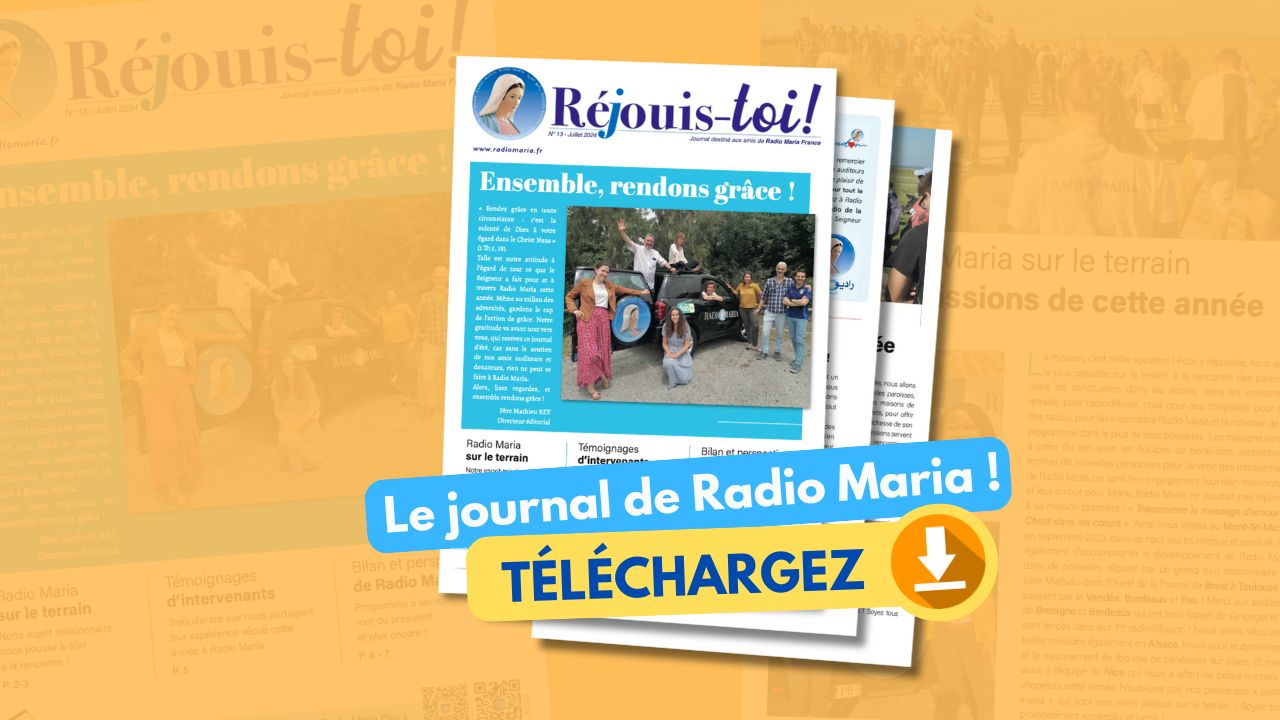 Téléchargez le journal de Radio Maria « Réjouis-toi » et restez informés des missions, des événements, du programme et des nouveautés de la rentrée. « Réjouis-toi » n’est pas seulement un journal d’information, c’est aussi un compagnon de route : feuilletez ses pages et, comme dans une grande famille, partagez avec nous la joie des merveilles accomplies par le Seigneur à travers la radio de la Vierge Marie.